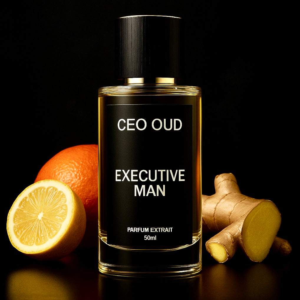 Executive Man is the key to success and audacity. This fragrance for those who command respect and exude confidence, both a professional and playful setting.. With a generous dose of ambroxan and ginger, this blend is masculinity like non other.